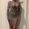 Crystal rhinestone embellished sheer mesh party evening dress.