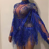 Make a statement on your special night out with this blue sheer mesh party evening dress! Embellished with crystal rhinestones, this dress is all about the glitz and glamour. It will definitely make you shine on your special day. The nude sheer mesh adds sexiness to the piece.