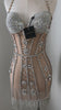 Are you determined to be extra different from everyone else? The stunning midi crystal Dress dress by Loreta is an embellished, hand-beaded, sequins dress, with a nude sheer mesh tulle fabric. Made from premium materials.