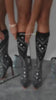 The Amir Crystal Boots are the ultimate blend of glamour and sophistication. These statement boots feature dazzling crystal embellishments that catch the light beautifully, making them perfect for elevating any outfit. With a sleek pointed toe and a high stiletto heel, they exude modern elegance while ensuring a flattering fit. Designed to turn heads at special events, parties, or nights out, these boots are crafted with meticulous attention to detail for a luxurious finish. Step out in style and make a bold statement with the Amir Crystal Boots.